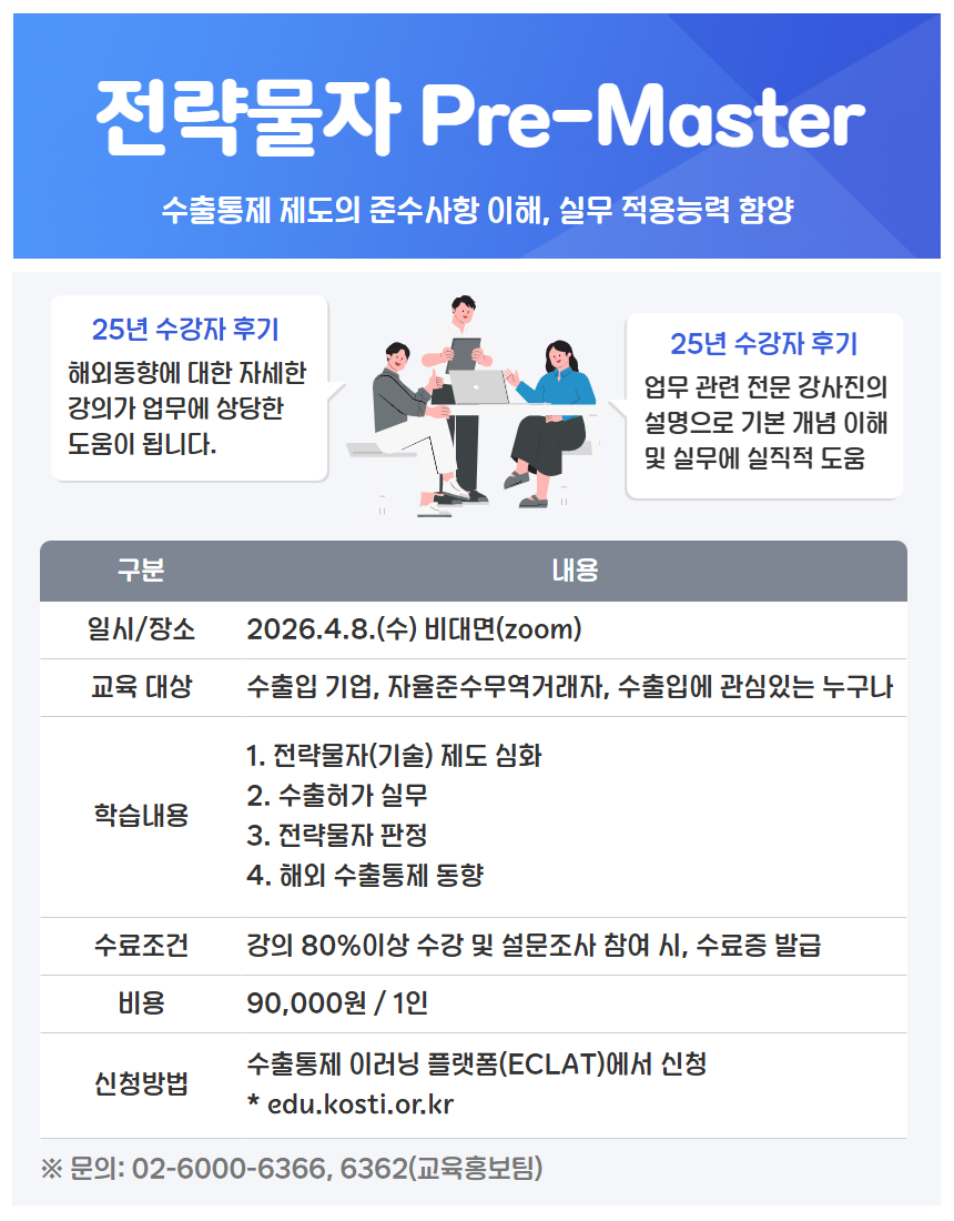 아래와 같이 일정 안내드리며, 전략물자 실무역량을 높이고자 하는 수출기업 분들의 많은 참여 바랍니다.