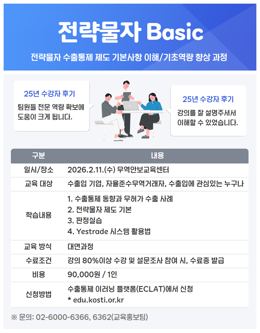 아래와 같이 일정 안내드리며, 전략물자 실무역량을 높이고자 하는 수출기업 분들의 많은 참여 바랍니다.